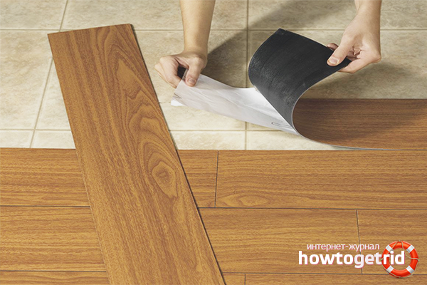Tiles need to be laid end-to-end, without cracks. After gluing, you need to roll the surface with a roller, and wipe the adhesive that has come out with a sponge. After 30 minutes, the roller manipulation must be repeated.