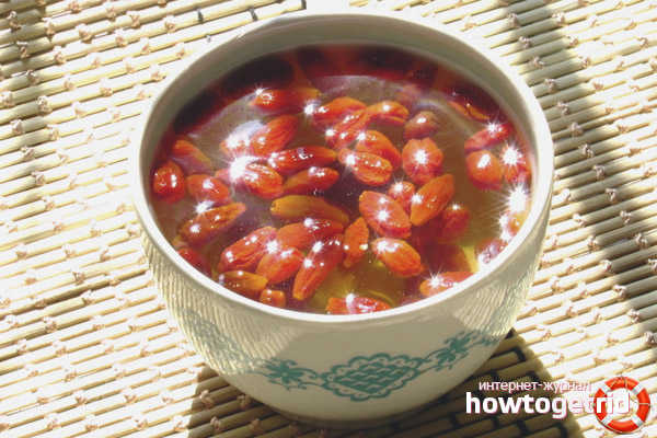 - You can also make black tea from such fruits. For such a recipe, you need a quarter liter of water, 3 teaspoons of goji. It will take 5 drops of lemon juice.Before preparing such a drink, you need to rinse the berries and pour boiled water. Next, you need to insist the preparation of a third of an hour. After this, the infusion should be filtered and pour lemon juice. If you want, you can use a similar drink unbroken. You can put honey to your taste.