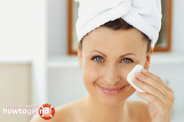- After removing makeup, be sure to wash in cool and warm water alternately (contrast rinsing). Thus, you will increase skin tone and saturate it with oxygen. Complete the manipulation by wiping with a medicinal tonic.