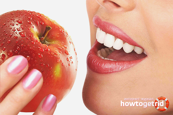 - If it is not possible to rinse your mouth after eating, you should finish the meal with an apple. The acids contained in this fruit remove plaque and lighten the smile a little. But apples are emergency measures, they cannot be replaced by full-fledged toothbrushing.