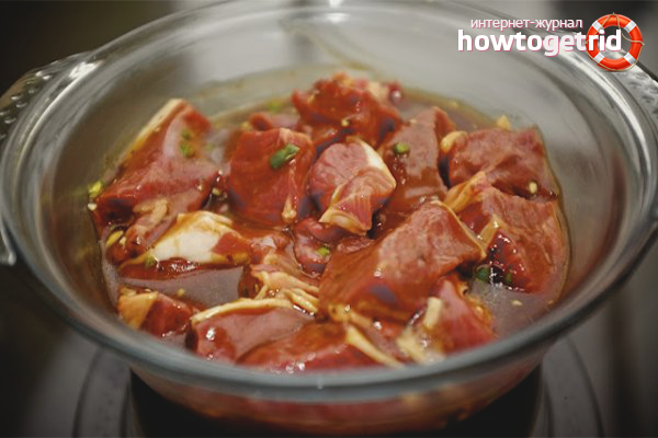 - Wait for a certain period during which the meat is pickled. For pork and beef, it is 4 hours, for lamb - 5 hours, for chicken about 2-3 hours.