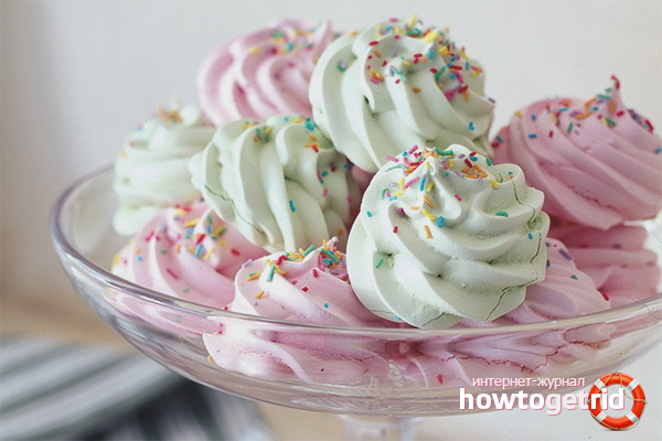 It is important to understand that meringues do not need to bake, you just have to dry it. In this case, it is necessary to observe the temperature regime and the exposure time of the mass in the oven. In cases where your oven has a convention function (moisture extraction), use it.