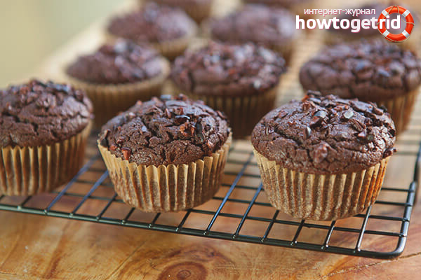 - Beat components with a mixer or similar household appliance. Combine both masses with each other, mix thoroughly. Next, muffins are baked in the oven according to classical technology.