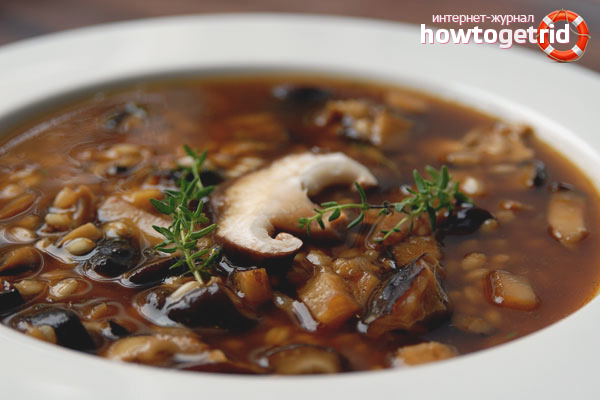- Pre-soak dry mushrooms, leaving them for a couple of hours in drinking water at room temperature. After the specified time, boil the raw materials. Do not drain the fluid in which the mushrooms languish. Strain the water and cool.