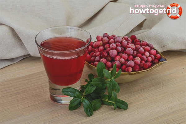 - Morse. Morse is considered a healthier and healthier drink, because the berries in it are not exposed to heat and retain in their composition all the valuable substances. For the preparation of fruit drinks, you can use fresh or frozen berries. Berries can be thawed only at room temperature, if they are warmed in the microwave or dipped in a container of hot water, the temperature difference will completely kill all the vitamins. Lingonberries should be filled with sugar and left for an hour. Then the berries need to be grated through a sieve and diluted with pulp obtained water - about a liter of water for half a glass of berry juice. Drink cranberry juice in a glass every two hours.