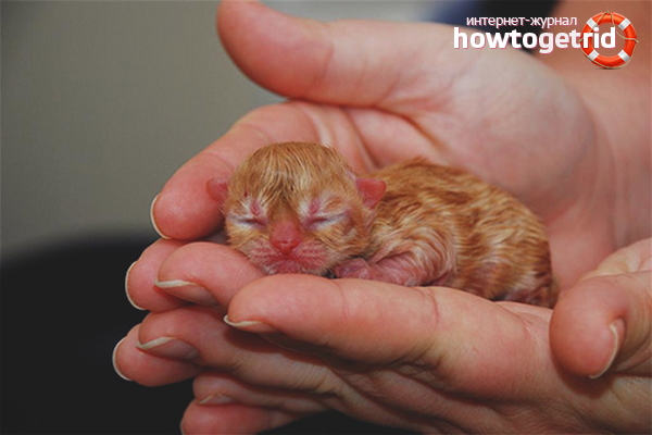 - In some cases, babies begin to breathe inside the bladder when the amniotic fluid has not yet come out. This step clogs the lungs, as a result of which kittens have difficulty breathing. Gently take the kitten in your hand and lower your head down so that water flows out of the nose. If this does not happen, shake the cub a little. The main thing is to make sure that the kitten has normal breathing. After this stage is completed, examine the language of the animal, it should be pink. If the color is closer with blue / violet, wrap the kitten in a diaper and hold it upside down for a while. When the baby beeps, feel free to pass it to mom.
