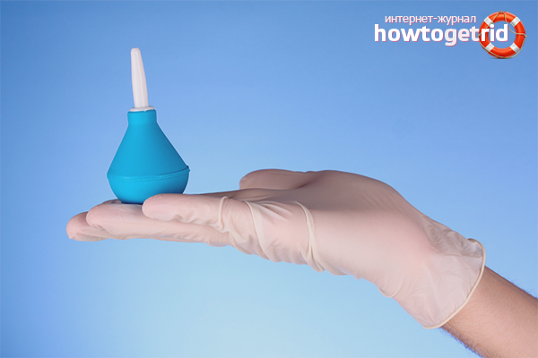 Patients with food and alcohol poisoning and people who have taken too many tablets are given an enema after washing. Use saline or soda solution, potassium permanganate is suitable. You will need a rubber pear and petroleum jelly, which can be replaced with a fat baby cream.