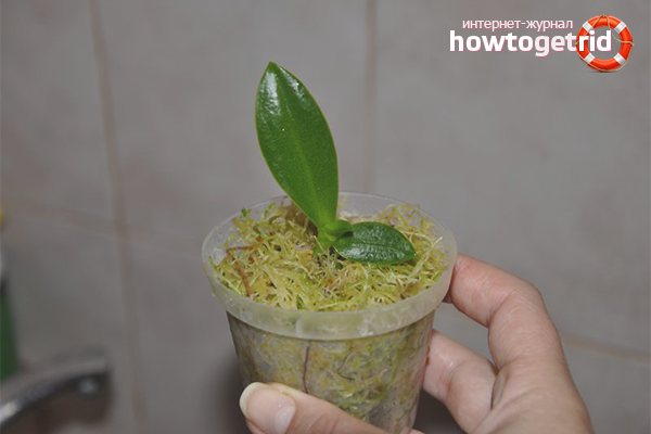 Plastic cups with cuttings must be covered with plastic bags to create a greenhouse effect. When the roots of the blanks grow by 4-5 cm, the young orchid is planted in a pot of earth and taken care of as an adult flower. The only difference between seedlings and the mother bush is that they do not tolerate direct sunlight and develop more actively in the shade.