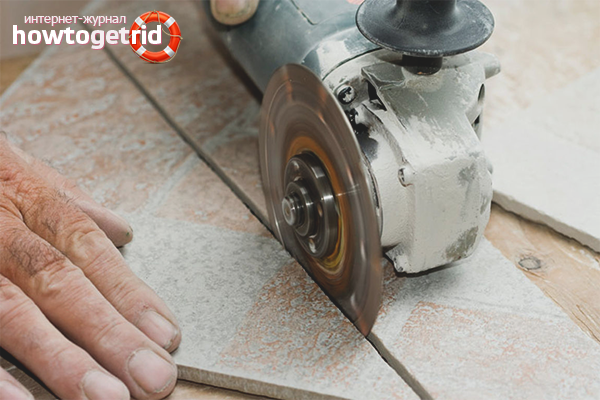 Grinder grind uneven edges. The dry cutting disc is replaced with a variety for stone. Turn on the electric tool at minimum speed and process the tile cut.