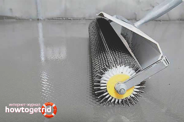 Does everyone know the role of a primer? If not, read the following sentence. Primer for cement or concrete base is designed to improve adhesion. If you use a cement-sand screed, an ordinary primer is quite suitable. But with a concrete base, it will not "ride", you will need to buy a special primer. It can be applied using a roller and brush (in hard to reach places). If the screed is too porous and dry, repeat the procedure. But only after the first layer has completely dried.