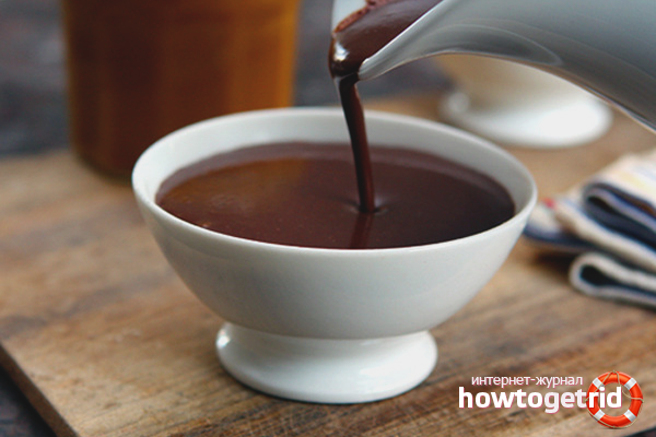 - Remove the liquid from the burner, add 50 gr. liquid honey, 4 ml. vanilla essence, 245 gr. grated chocolate, 1 pinch of salt. Pour 25 grams to make it thick. corn starch, bring the mass to uniformity.