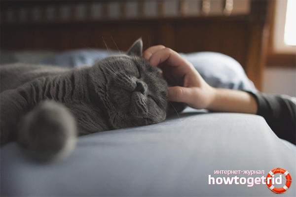 - Create maximum safety and comfort conditions for your pet, build a bed from a blanket or blanket on the bed. Stroke the cat after waking up and at the moments when she just falls asleep. Be close, but do not impose.