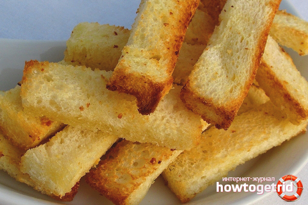 - You can make crackers in a pan in another way. To do this, chop the bread into cubes, fry in hot oil. Leave to drain, then rub each bar with a whole garlic clove.