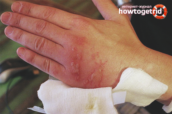 - If an open wound has formed at the burn site, you need to treat it with a disinfectant. It can be potassium permanganate or hydrogen peroxide. Do not apply iodine or other alcohol-containing compounds to the wound - the pain from their use will only intensify.