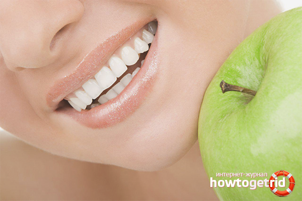 For strong teeth, you need to eat more foods saturated with calcium and phosphorus. This is cottage cheese, kefir, spinach, cheese, milk, beans. The use of citrus reduces bleeding gums, and also inhibits the development of inflammatory processes in the oral cavity. Fish and seafood very well affect the condition of the teeth - they contain a huge amount of vitamins and minerals. Nuts are considered a good drill for your teeth. But do not bite walnuts or almonds with your teeth - you can completely lose them.