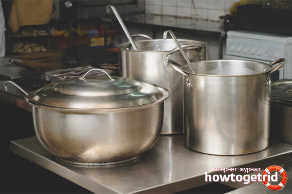 Acidic medium and alkaline cleaners are oxidized. At the same time, they leave spots on the surface of the dishes. Aluminum saucepan loses its original shine.