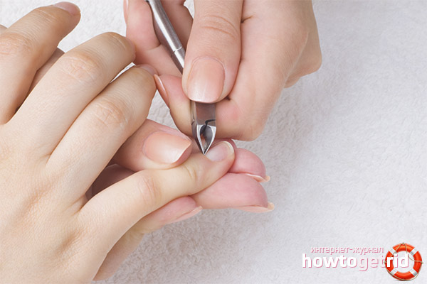 - Small burrs are easier to cut. It is necessary to arm with forceps, and then cut off the damaged areas of the skin.If there is no swelling in the place of the former burrs, perform the correct manicure.