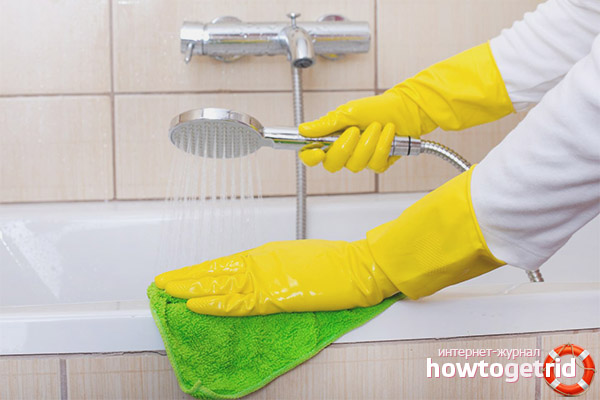 - The bathroom must be carefully cleaned with the resulting solution using a sponge, paying special attention to all the irregularities and bends of the bathroom. After cleaning, let the solution stay on the surface for 15 minutes.