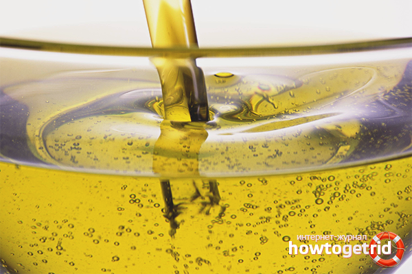 Heat three tablespoons of oil and apply them to a pre-cleaned stain. It is necessary to wait about 5 minutes for the area to be completely saturated with oil.