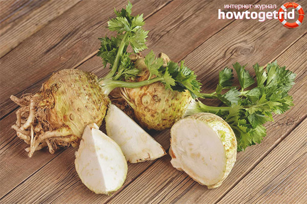 Root crops of celery are recommended to be introduced with a diet for weight loss and during recovery. The substances contained in it help to cleanse and strengthen the body, and also help in the fight against such diseases: