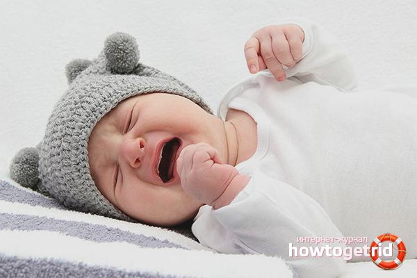 Children during tantrums open their mouths wide and gasp. It enters the stomach and intestines, causing colic. If the baby screams for more than 5 minutes and cannot stop, he is lifted with a “column” and helps to burp.