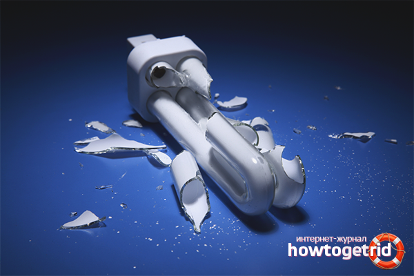Broken glass flasks must not be buried in the ground or thrown into garbage containers. They also do not recommend storing houses. Residents of large cities can call a special team that will remove the remains of an energy-saving lamp, check the concentration of mercury in the air and determine if the carpet or sofa near which the fluorescent device crashed is dangerous for apartment owners.