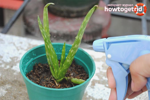 - Watering. The plant does not like much moisture, so watering aloe is often not worth it. In spring and summer, you need to water the plant more often, 2-3 times a week. But in the winter, when the plant slows down its growth, it is only necessary to water the flower if the soil becomes dry. Excess moisture can lead to rotting of the roots and death of the plant. Watering is carried out with settled water at room temperature. Cold or hot water can not be watered. In summer, when the air becomes dry, aloe needs regular spraying. You can also gently wipe it with a damp cloth to wipe off dust.