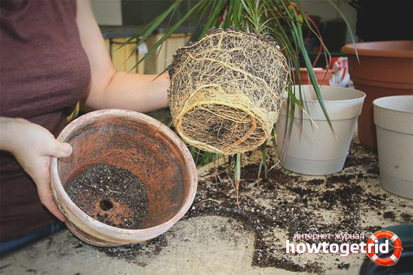 Young plants need to be replanted once a year, adults less often. Oriented to the roots. As soon as they become visible above the surface of the soil, then the time has come.