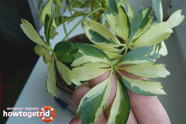 Avoiding these factors, you can completely avoid the appearance of byaka. If your sheflera began to fade, discard leaves, blacken or get wet - immediately save the plant. First you need to remove the beauty from the pot and carefully examine the root system. Often rot begins there.