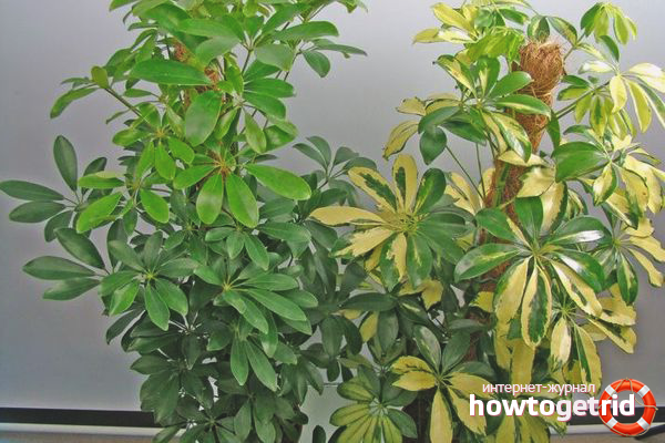 Tip. If you bought a shefler at a store, wash her leaves at home with laundry soap. For greater decorativeness, it is customary to cover them with wax. They shine, but cannot absorb moisture. In a healthy plant, the leaves themselves will be glossy.