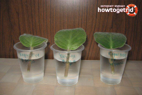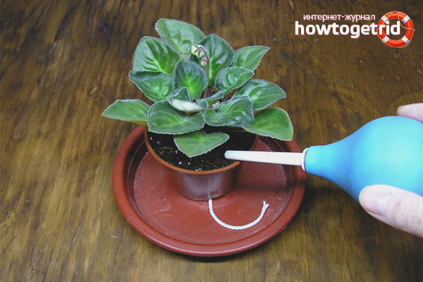 - Top dressing. Senpolia only needs to be “fed” with fertilizers designed specifically for violet. The feeding pattern depends on the season: in the fall and spring, fertilizers are applied once a month; in winter - organic once a season; in summer they look at the state of the flower.