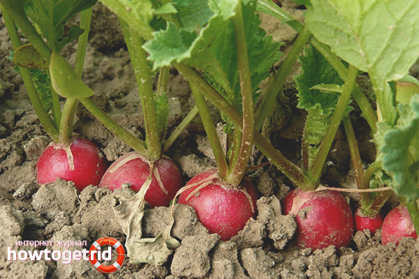 When snow melts right into the damp earth, a radish is sown in early April. Next, new landings are done every 12 days. Such a conveyor will allow you to eat root crops constantly.