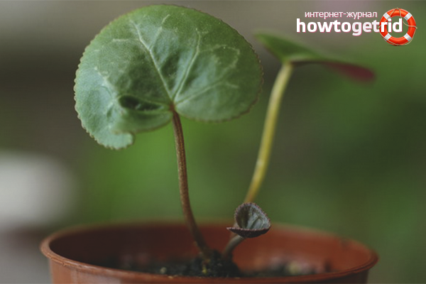 At the first stage, cyclamens do not need light or heavy watering. Seeds should be protected from drafts and sudden changes in temperature. Hacked sprouts are aired daily, raising the glass or opening the film. Keep the box away from open windows and slots so that the draft does not cause cyclamen death.