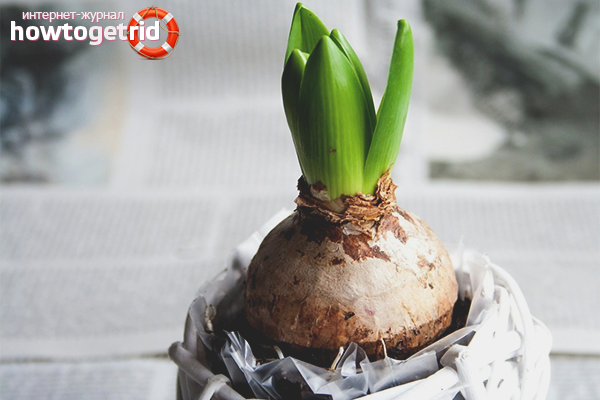 After hyacinth has been selected, it is necessary to prepare it well. For this, the bulb is soaked for 17-19 minutes in a strong hot solution of potassium permanganate. Approximately + 40 ° C. Then, without washing, dip into the solution of phytosporin. Cooking instructions can always be found on the packaging.