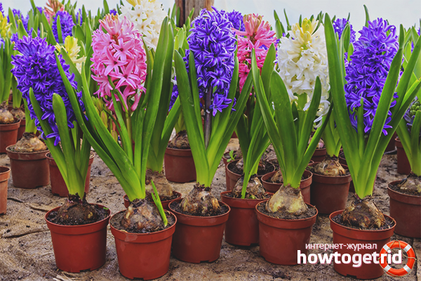 Until the last leaf has withered, we continue to regularly water the hyacinth as needed. Naturally, fertilizing should also not be forgotten. All this will allow the bulb to collect enough nutrients and without loss to postpone the recovery period.