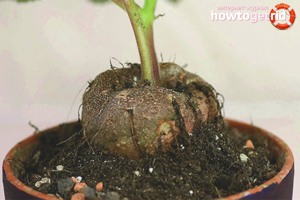 If the plant has successfully grown tuber, then it is advisable not to leave it to winter in the soil for the first year. You need to remove it from the pot, rinse thoroughly and dry. Then you need to put the "teenager" in a dense bag with wet peat or sawdust. Required openings for ventilation and evaporation of condensate.