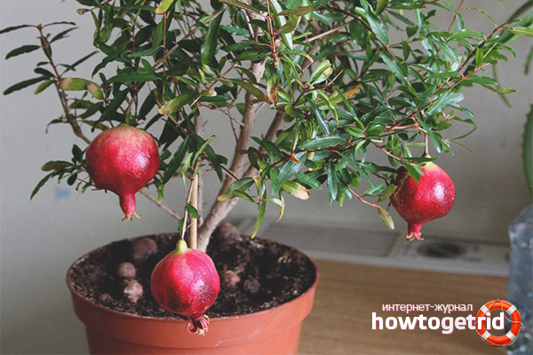 During the flowering period, you can try to pollinate the plant with a brush or a cotton swab. No one guarantees that an ovary will appear on the pomegranate, but it is likely that several fruits will ripen on thin branches by autumn. Even if the tree will not be born annually, it is worth planting for the sake of beautiful pink buds that will appear every 10 months.