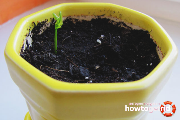 In the soil, make a small depression, about 1.5–2 cm, slightly moisten the soil and stick a few seeds in it. It is recommended to take 2-3 grains per hole, because part of the planting material may be empty and non-viable. If several sprouts immediately hatch from the pit, they leave the strongest and healthiest specimen, the rest are carefully pulled out or cut to the very root.
