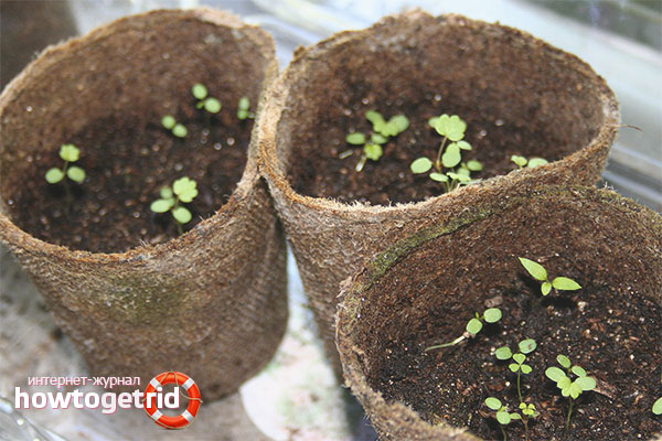 Transplanted into plastic or peat pots, or in bags of milk. Do not recommend juice boxes, in which seedlings are poorly developed.