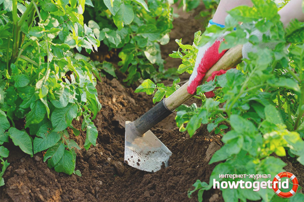 - With a seedling height of 9-12 cm, the bushes spud. The soil is scooped up with a chopper from the center of the circle.