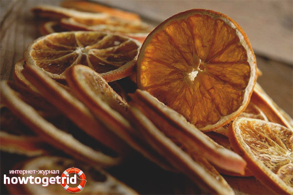 An important role is played by the smell of orange, which is what becomes an additional argument in favor of drying in the peel, especially when it comes to whole fruit. Essential oils are baked, so the smell becomes less harsh, persists for a long time, and continues to freshen the air in the room, giving a good mood.