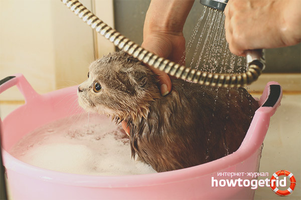 - Then you need to wash off the foam and dirt from the kitten, carefully pouring it with clean water. Muzzle and head can not be watered, you can just wipe it with a damp cloth.