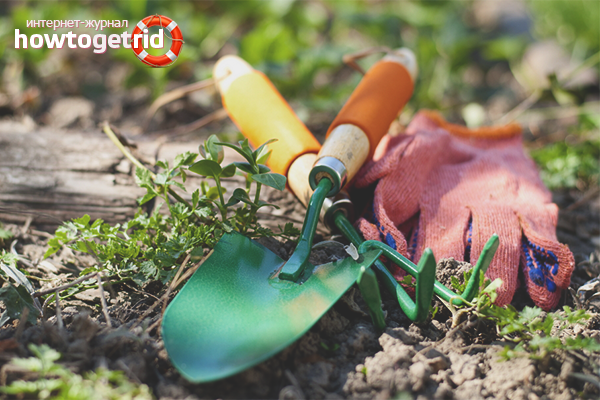 - Cutting a young plant. This method is also not very pleasant, because it is long and painstaking. But it has a huge plus: additional fertilizer plot. With the advent of spring, you should begin to prune the recently overgrown grass, digging a little into the soil. After a few days, it will grow back, and you must cut it again. The meaning of the method is to "tire" wheatgrass. When you regularly prune the stem, the root is significantly weakened and is slowly “leaving” the garden.