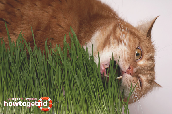 - Grown grass. If you do not have the opportunity to go to nature, you can grow such grass at home, right in the conditions of a city apartment. Veterinary stores sell seeds of special grass that causes cats to vomit. Put them in a pot and place them on the windowsill. As soon as the seeds begin to germinate, the cat herself will start to regale herself with the offered treats and will be very grateful to you. If there is no time for cultivation, there you can buy a pot with sprouts already sprouted.