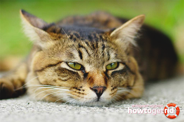 An attentive owner will notice that something is wrong with the animal. The cat becomes apathetic, refuses to eat, she may start convulsing, diarrhea and increased salivation may appear.