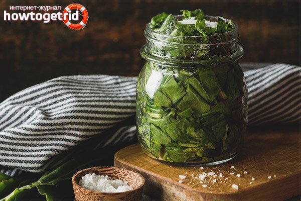 Another very good and easy way to preserve sorrel is with salt and without sterilization. For this recipe we will need a large amount of salt. It is important to remember that when cooking with such greens, salt does not need to be added.