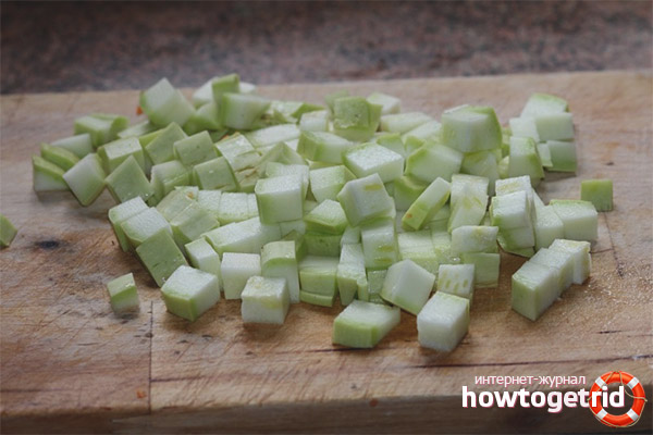 - If, on the basis of the processed products, salad or caviar is prepared, then it is better to skip the vegetable through a blender or chop into a cube a couple of centimeters.