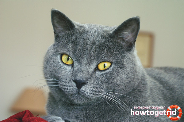 Important! When choosing a pet, you need to pay attention not only to the color of his coat, but also to the legs. Chartreuse and wool, and pads should be blue. If you see that the pads are different from the color of the coat, or have a splash of black or white - before you is not a real Cartesian cat, but a cross.