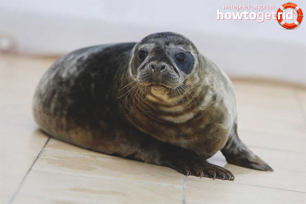 The ringed seal resembles in its structure a small seal, whose weight is about 50 kg. The body looks short with a dense layer of fat. A small head is located on a squat neck. The skin is covered with a hard, slightly noticeable pile. Adult males and females have a different color - from black to tan. All over the body, except for flippers, light rings are scattered.