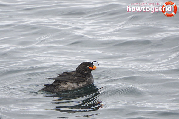 With a wingspan of 50 cm and a body size of 25–27 cm, these birds are quite nimble. They weigh only 0.3 kg. The auklet differs in the average body size, as well as the plumage of a dark gray color with a certain blue or black, it all depends on the age of the individual and its gender.